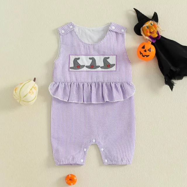 This Witch Hat Embroidered Jumpsuit is more than just a romper – it’s a memory maker. With its sweet striped pattern and whimsical embroidery, it will have your baby ready for laughs, cuddles, and endless adorable moments. Don’t wait – add this festive romper to your cart today and make her first Halloween unforgettable!